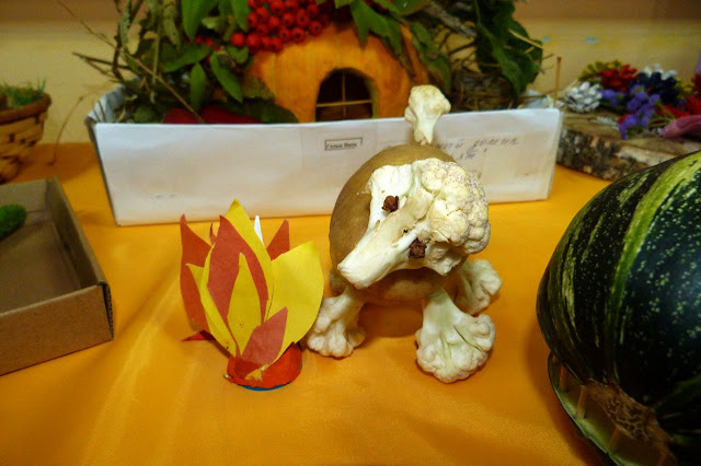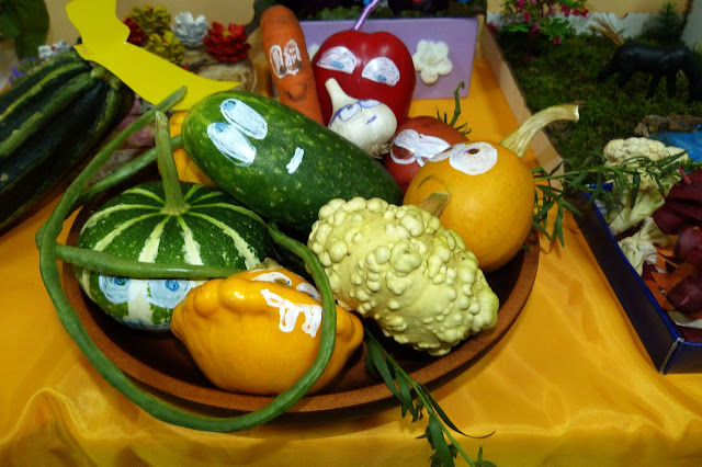 В Доме детского творчества была организована выставка поделок, плавно переходящая в познавательно-игровую программу «Что нам осень, подарила», на которой дети и их родители представили экспонаты, сделанные из даров осени. Участники с удовольствием делились своими впечатлениями о проделанной работе, с увлечением играли в различные игры, отвечали на вопросы викторины, знакомились с разнообразным миром фруктов и овощей, и их большим значение для организма.