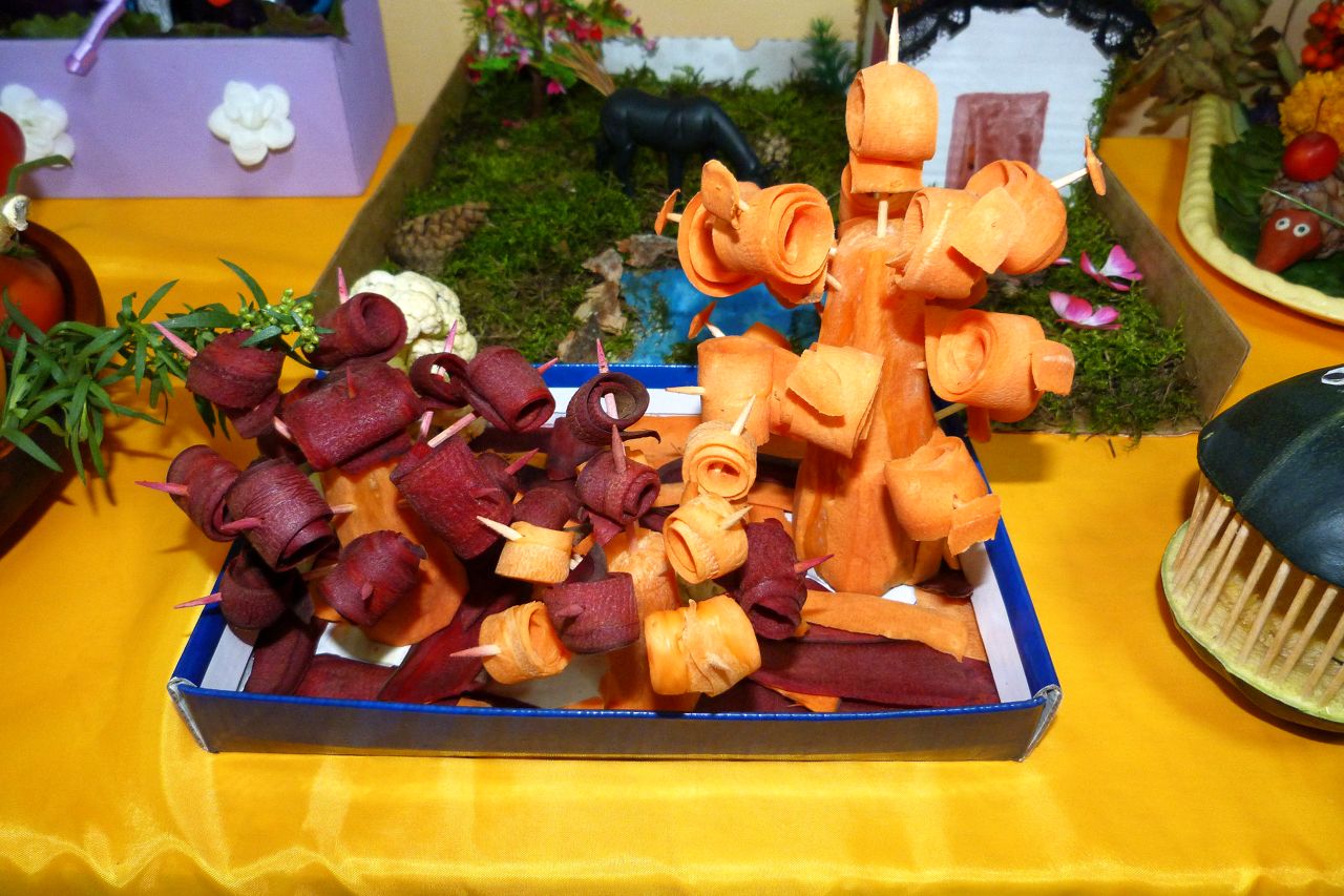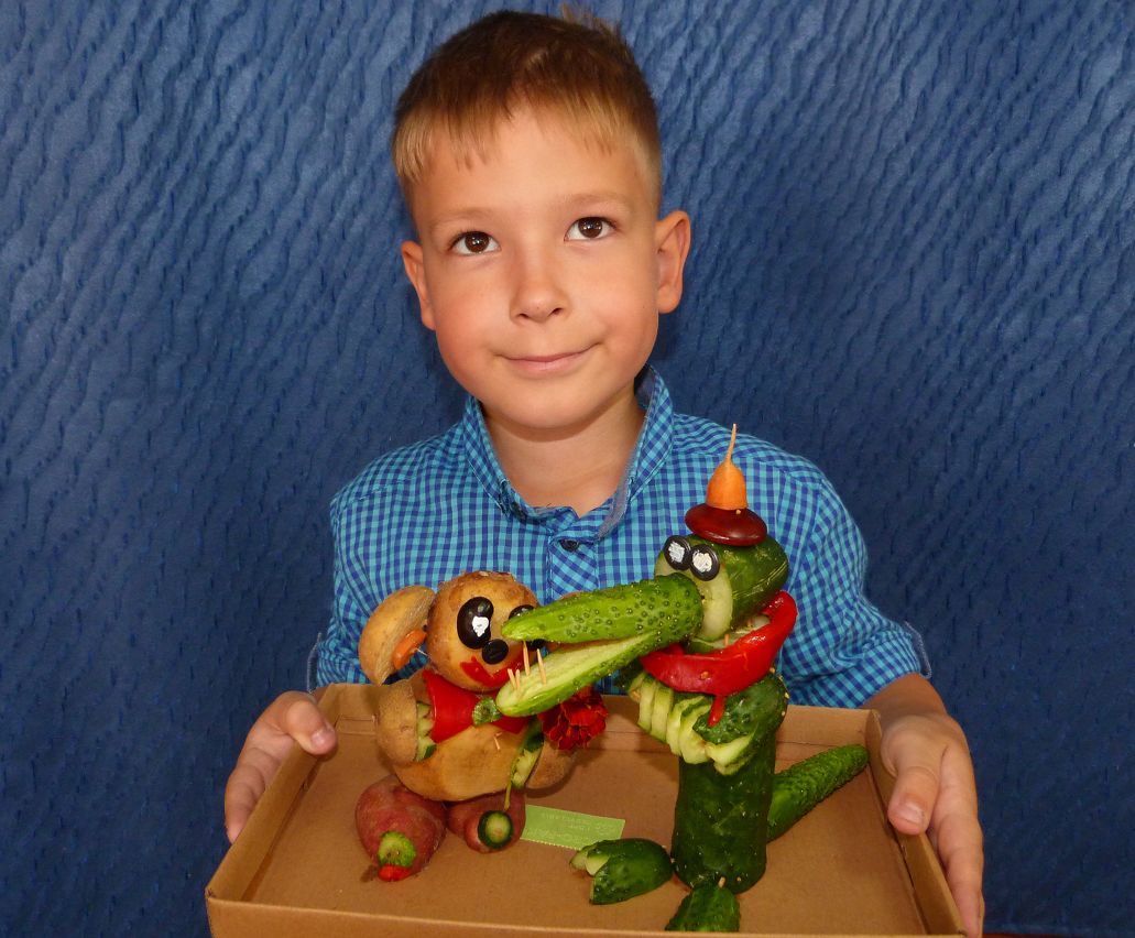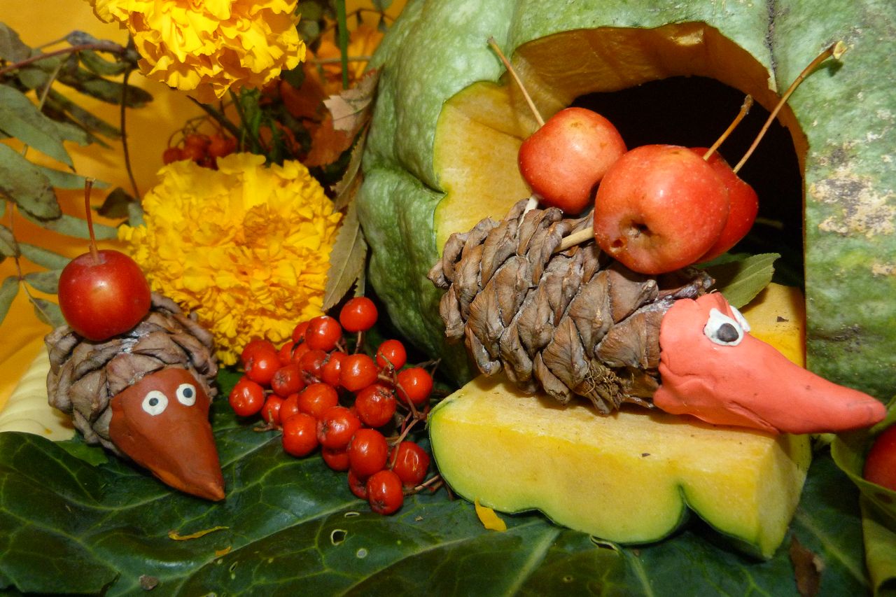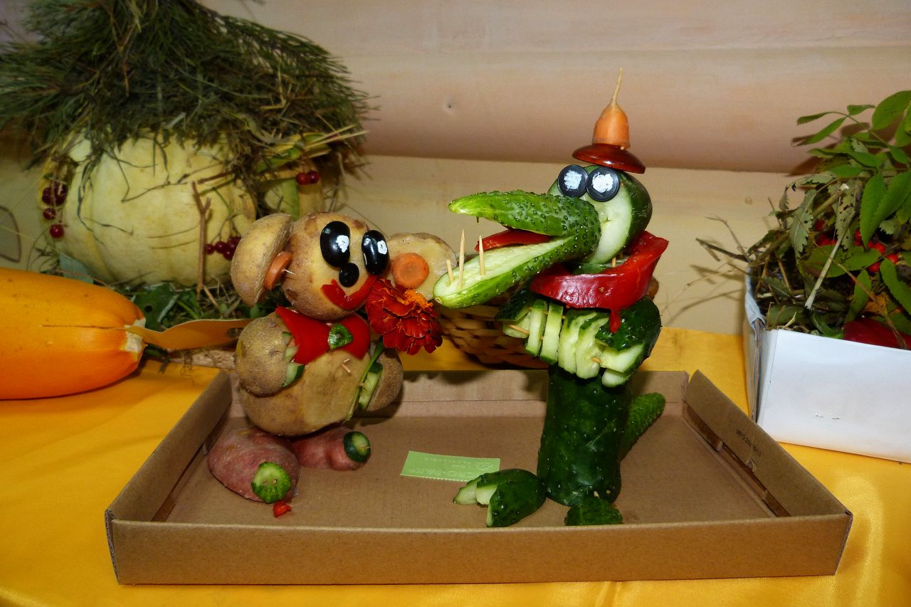 Наступила золотая осень – чудная пора, богатая своими яркими красками и плодами. Все собирают урожай, и некоторые даже не подозревают какие замечательные и интересные поделки можно смастерить из овощей и фруктов.