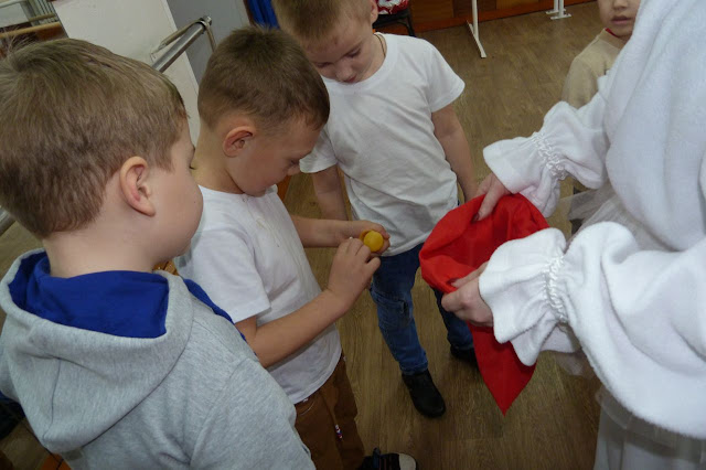 Дошколята вместе с колядовщиками участвовали в традиционных народных играх, устраивали веселые переплясы, водили хороводы, отгадывали загадки и пословицы, гадали на киндер яйцах.