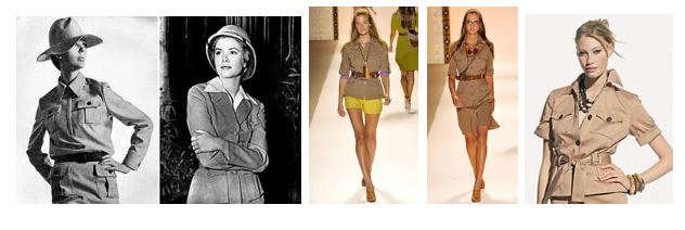 Сафари стиль появился в 60-е годы. Это преимущественно стиль для путешествий, который заимствует элементы тропической военной униформы. Характерной особенностью являются все оттенки песочного цвета в одежде и множество накладных карманов. Знаковым атрибутом является светлая шляпа с небольшими полями.