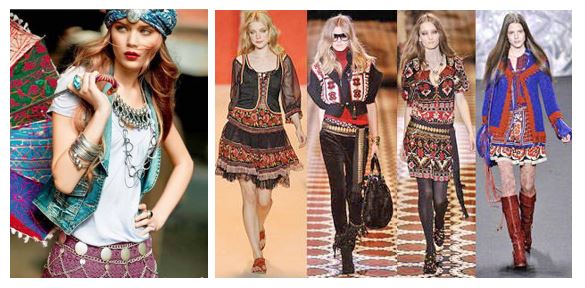 Этнический стиль одежды . Этот стиль вобрал в себя элементы различных национальных костюмов. Стал популярен в 1976 году, благодаря Ив Сен Лорану.