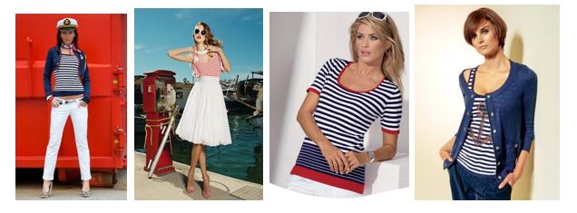 Морской стиль одежды - это курортная классика. Характерные особенности: сочетание трех цветов: синего, белого и красного. Полосатый принт, матросский воротник , укороченная юбка в складку, и морская атрибутика в аксессуарах.
