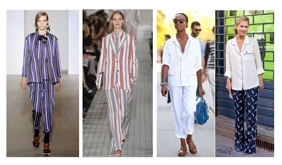 Пижамный стиль характеризуется просторными бесформенными вещами, напоминающими пижамный наряд, но предназначенными не для сна. Характерны принты в вертикальную полоску.