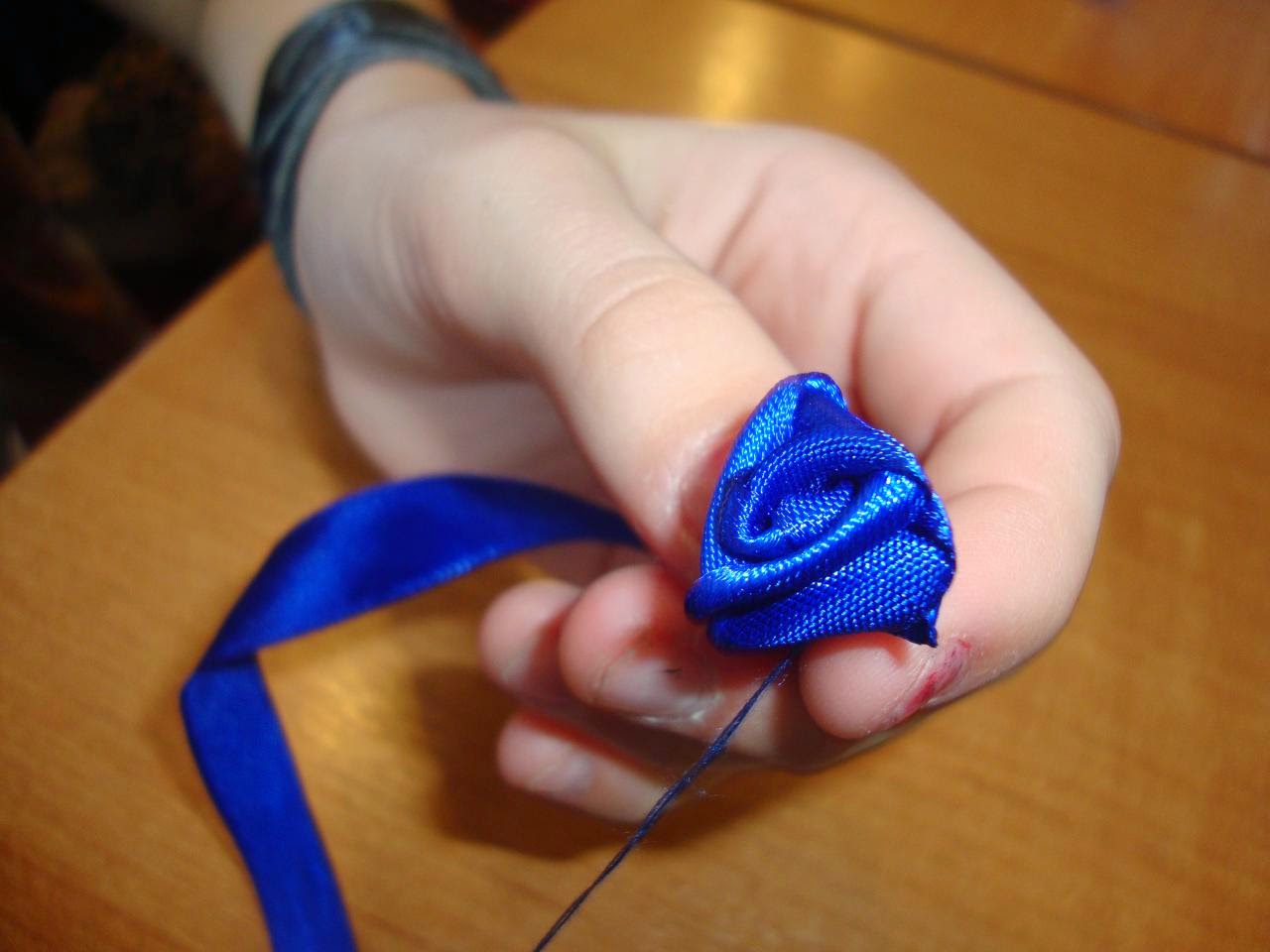 8. Изготовить лепестки – 5 штук и пришить к розам «паутинки».