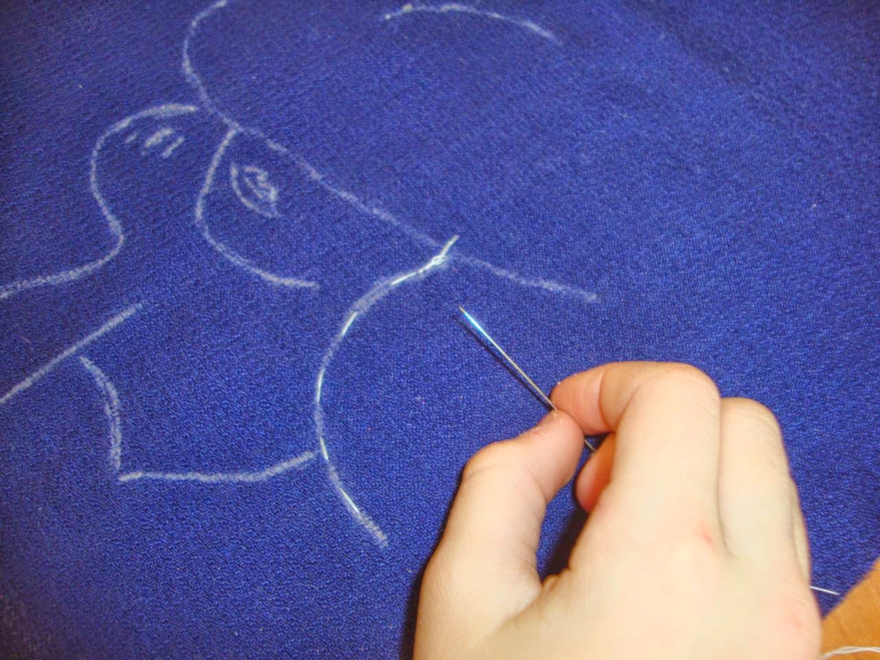 3. Прошить ручными стежками (швом вперед иголкой) по меловой линии рисунка.