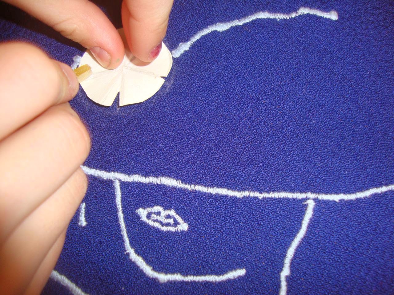 6. Изготовить шаблон, и сделать наметки на ткани места будущих роз «паутинка».