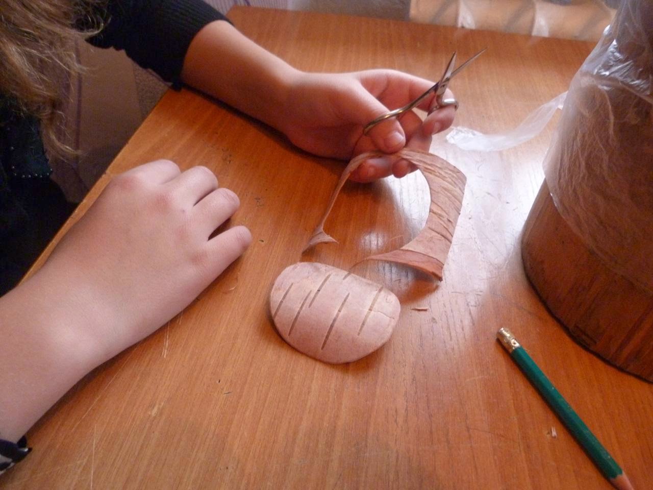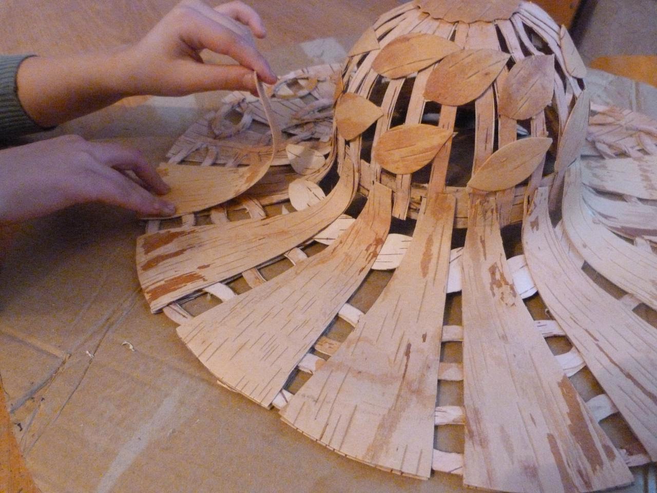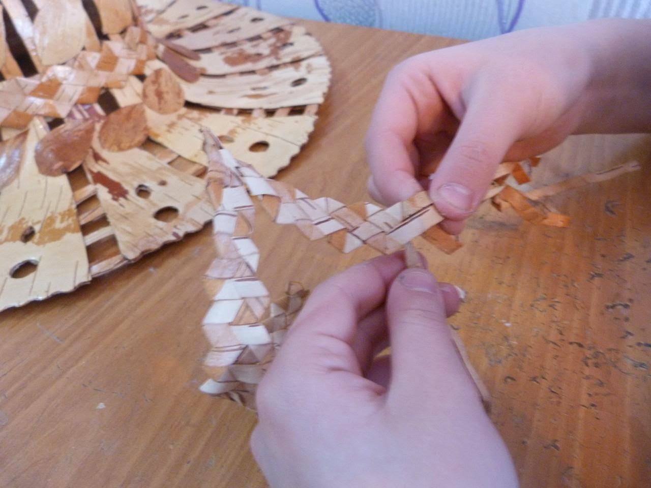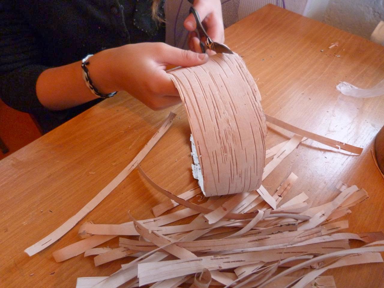5. Из белой бересты нарезаем полоски шириной 1 см, длиной 25-30 см